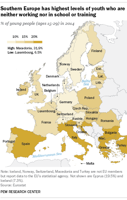 Southern Europe has highest levels of youth who are neither working nor in school