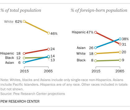 The U.S. has also long been home to more immigrants than any other country in the world, and by 2065, one-in-three Americans will be an immigrant or have immigrant parents, compared with about one-in-four today.