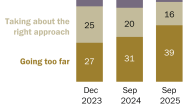 Nevertheless, half of Italians and more than four-in-ten French cite ethnic discord as a major national concern, as do three-in-ten Americans, British and Germans. Jordanians (9%), Bulgarians (10%), Canadians (12%), Poles (19%) and Japanese (20%) are the least likely to think ethnic conflict is a big issue in their societies.