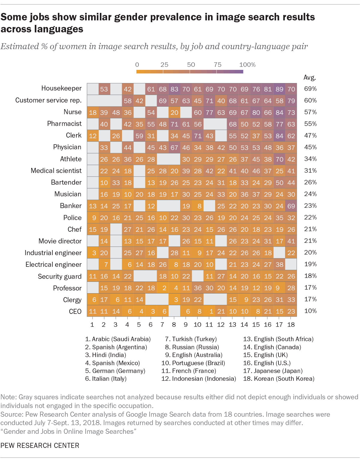 Some jobs show similar gender prevalence in image search results across languages