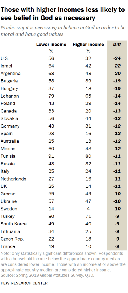 July 20, 2020 The Global God DivideThose with higher incomes less likely to see belief in God as necessary