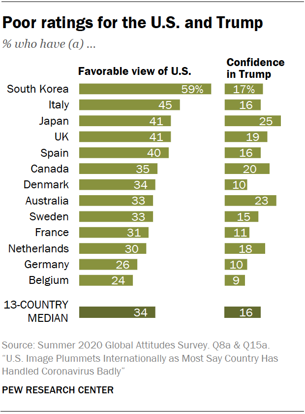 U.S. Image Plummets Internationally as Most Say Country Has Handled Coronavirus Badly