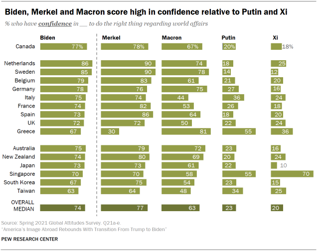 Biden more trusted than Putin and Xi, less trusted than Merkel