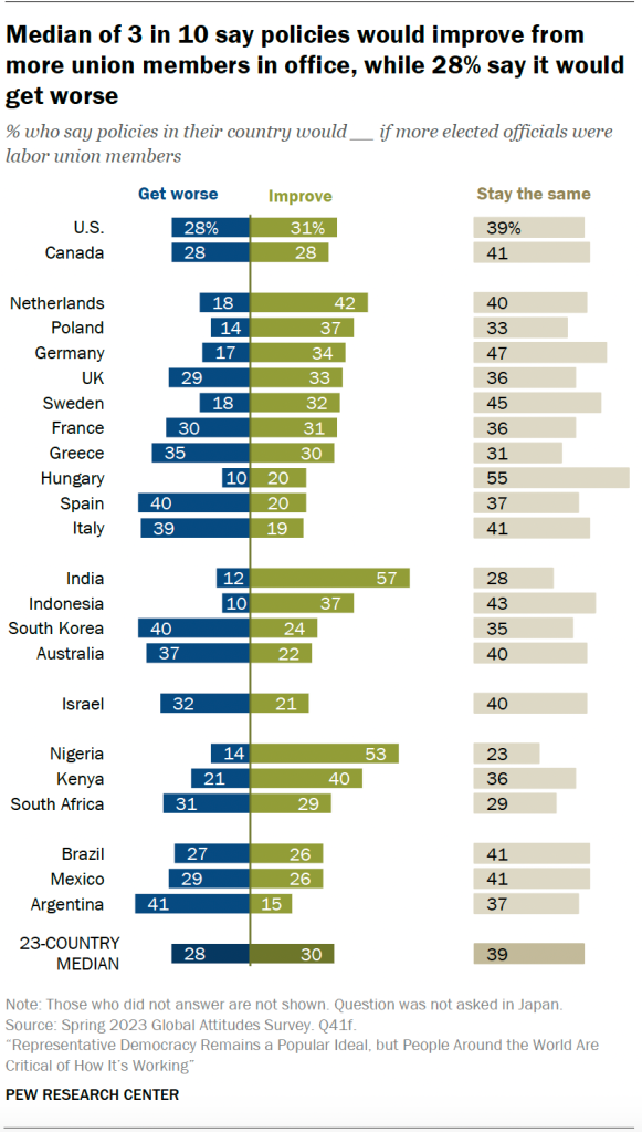 DownloadMedian of 3 in 10 say policies would improve from more union members in office, while 28% say it would get worse ← Prev Page 1 … 8 9 10 11 12 … 15 Next Page →