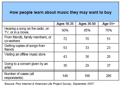 When asked how they learn about music that they might want to buy or listen to, the old-fashioned ways dominate: