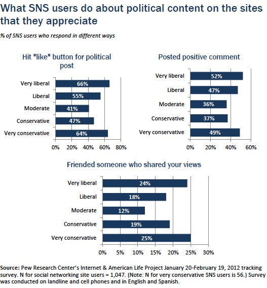 - 47% of SNS users have hit the “like” button in response to political comments or material posted by someone else.