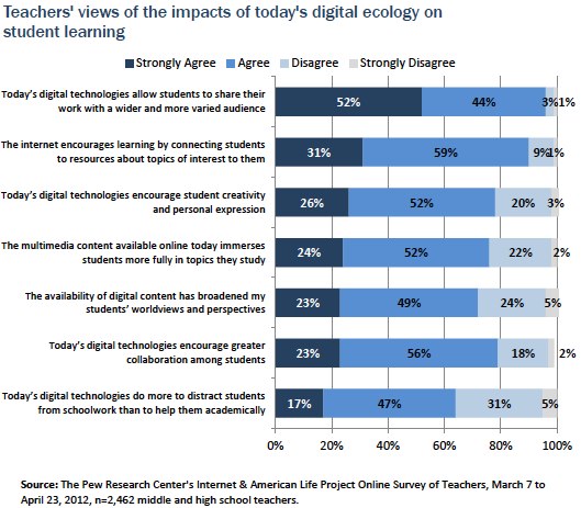 Considering my own students over the years, I don’t agree that digital technologies diminish students’ attention spans. I know students who will read for hours and spend extra time outside of school writing and working on projects because they are engaged and enthusiastic in learning more about topics that interest them. If anything, technology tools provide my students opportunities to participate in learning activities and extend their learning beyond the school day if they want. Students write entries and comment on each other’s Edmodo posts in the evenings and weekends without any requirement from me to do so. – National Writing Project teacher