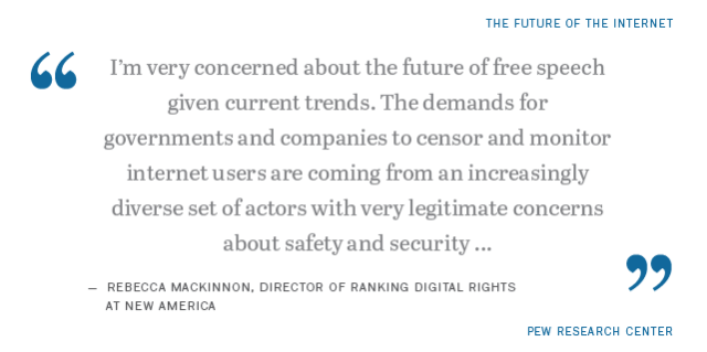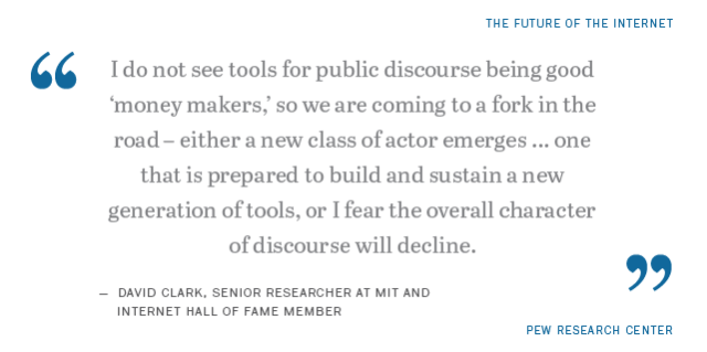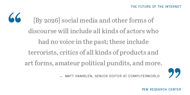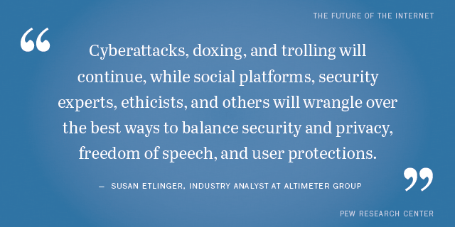 Read the full report “The Future of Free Speech, Trolls, Anonymity and Fake News Online” to read more expert predictions about the future of the internet’s social climate.