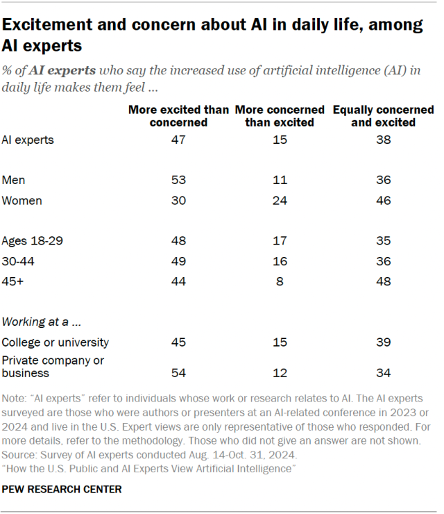 Note: We did not receive enough responses from Hispanic or Black experts to be able to report expert views by race and ethnicity; this reflects the racial and ethnic makeup of the field. These groups’ responses are incorporated into the general figures throughout. We also did not receive enough responses from experts working at nonprofits, in government or self-employed to break out these groups separately. Their responses, too, are included in general figures.