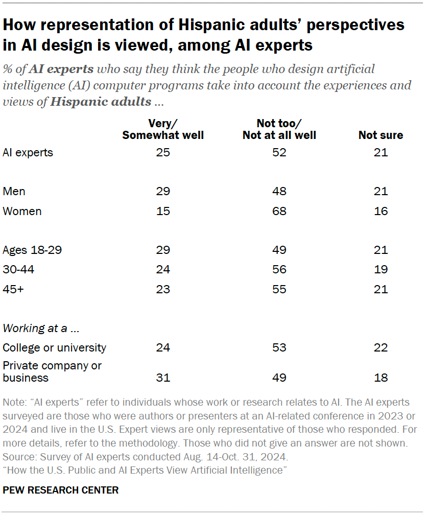 DownloadHow representation of Hispanic adults’ perspectives in AI design is viewed, among AI experts ← Prev Page 1 2 3 4 5 6 … 18 Next Page →
