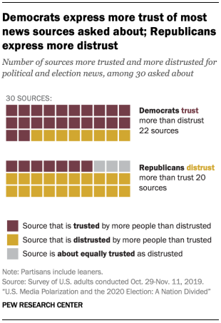 As the U.S. enters a heated 2020 presidential election year, a new Pew Research Center report finds that Republicans and Democrats place their trust in two nearly inverse news media environments.