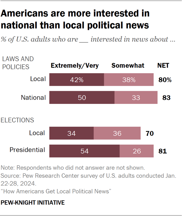 Americans are more interested in news about national politics than local politics