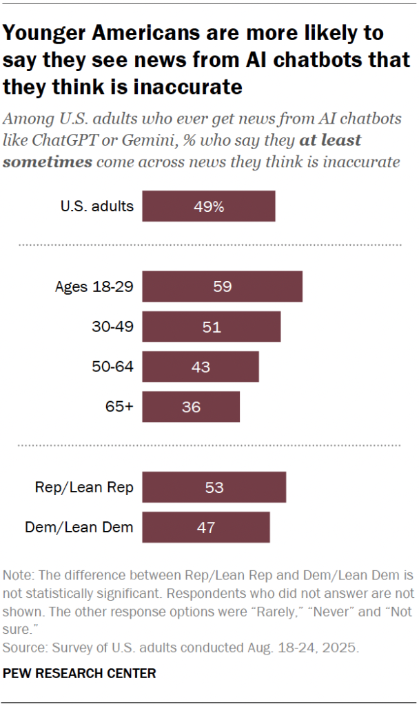 - Chart of the week: Younger Americans more likely to say they see inaccurate news from AI chatbots