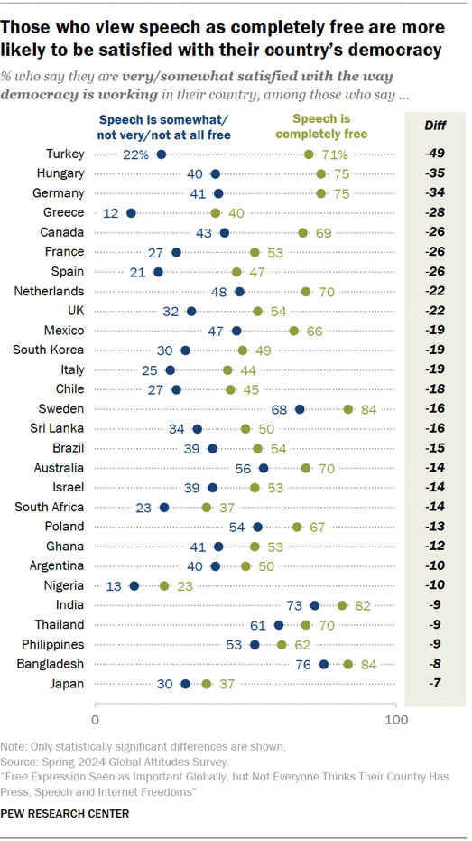 - Chart of the week: The link between freedom of speech and satisfaction with how democracy is working in many countries
