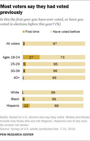 Just 3% of self-reported voters in the 2018 election say it was the first time they had ever voted; 97% say they had participated in elections before this year.