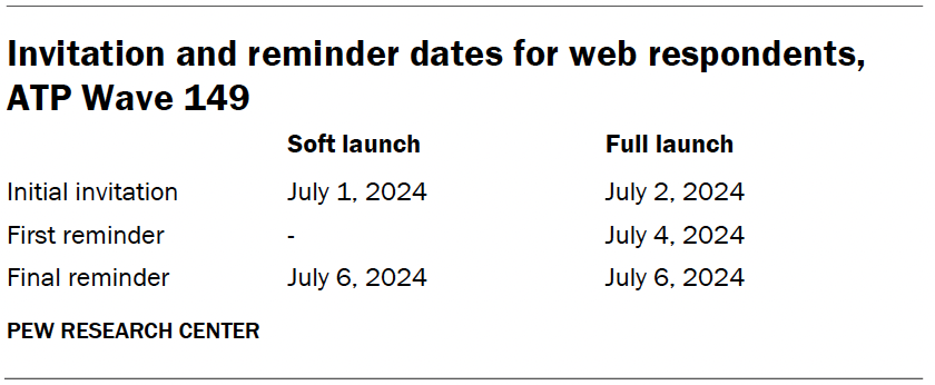 DownloadInvitation and reminder dates for web respondents, ATP Wave 149 ← Prev Page 1 2 3 4 5 Next Page →