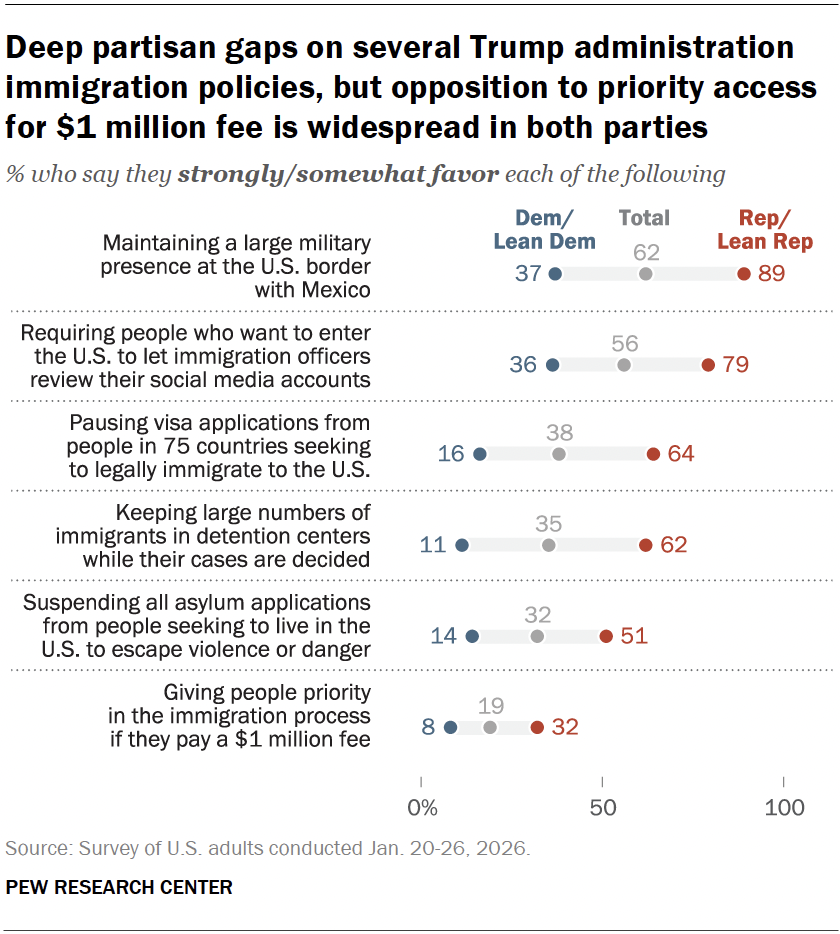 DownloadDeep partisan gaps on several Trump administration immigration policies, but opposition to priority access for $1 million fee is widespread in both parties ← Prev Page 1 2 Next Page →