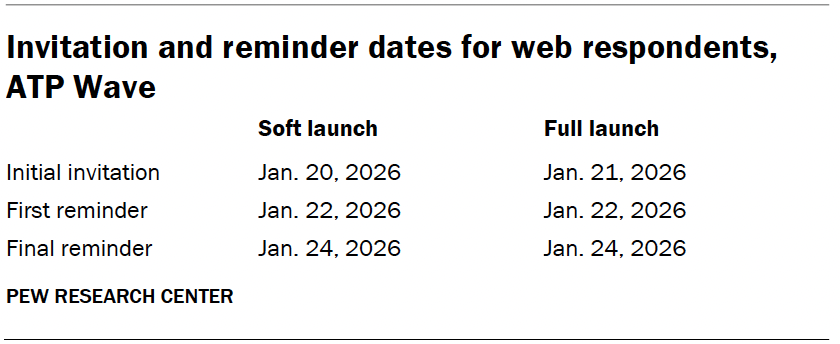 DownloadInvitation and reminder dates for web respondents, ATP Wave ← Prev Page 1 2 3 4 5 Next Page →