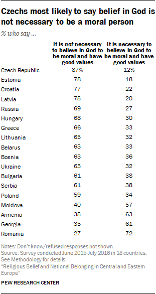 Across Central and Eastern Europe, most say you can be moral without believing in God