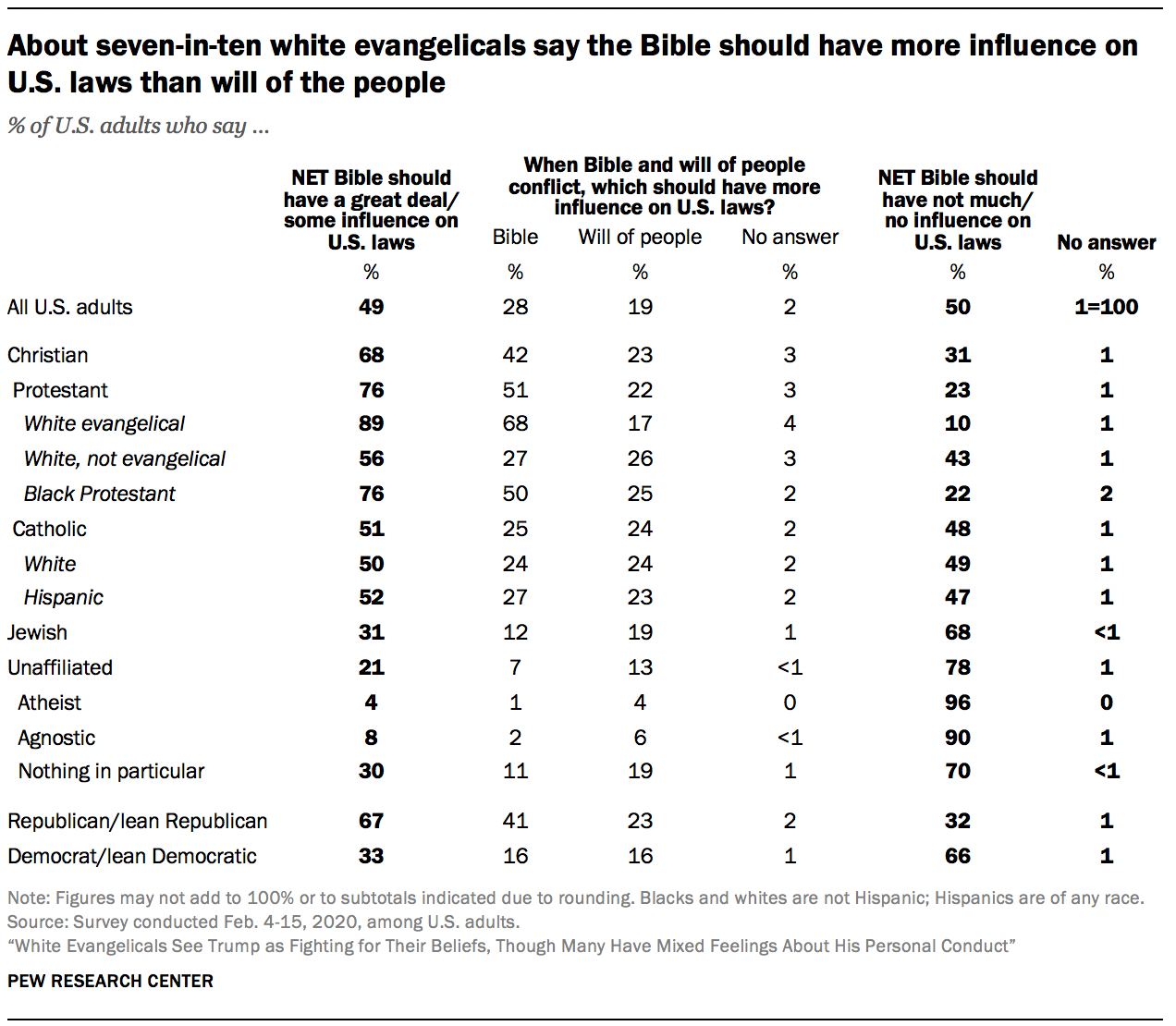 DownloadAbout seven-in-ten white evangelicals say the Bible should have more influence on U.S. laws than will of the people ← Prev Page 1 2 3 4 5 6 … 12 Next Page →