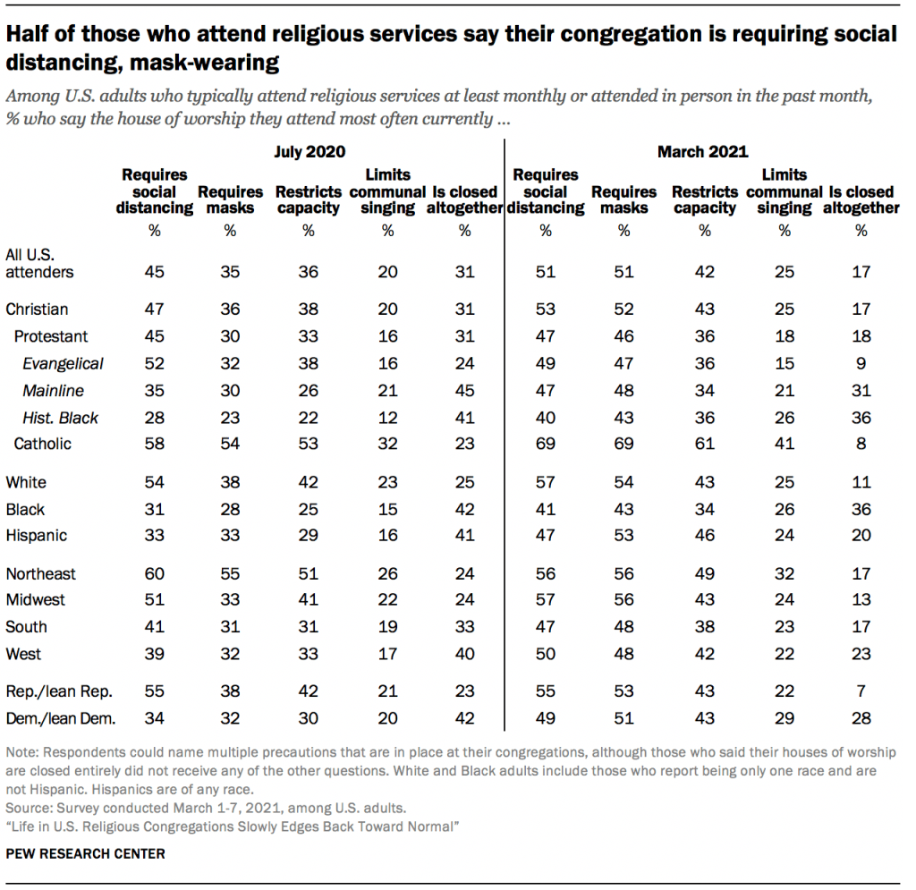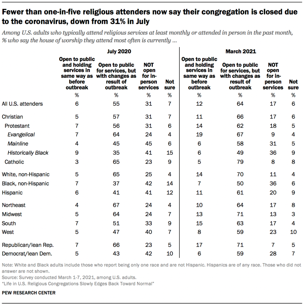 Of course, the new survey was conducted during winter. Outdoor services may have been more common last summer (and may be more common this spring and summer) than they are at present.