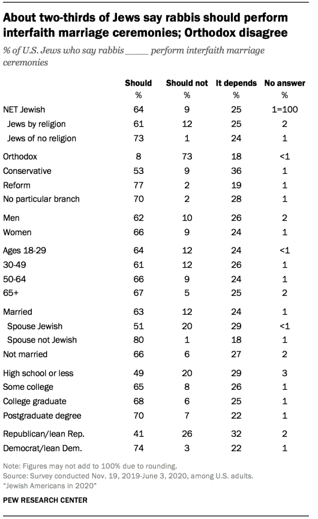 DownloadAbout two-thirds of Jews say rabbis should perform interfaith marriage ceremonies; Orthodox disagree ← Prev Page 1 … 3 4 5 6 7 … 13 Next Page →
