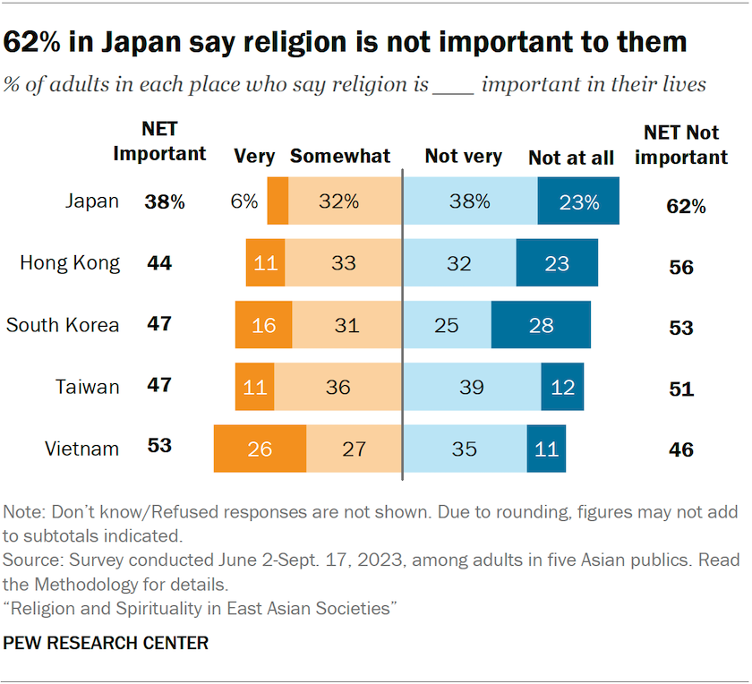 Far fewer Buddhists say religion is very important to them. However, many Buddhists surveyed say that religion is at least somewhat important in their lives.