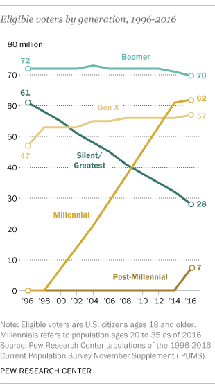 Millennials are approaching Baby Boomers as the nation’s largest living adult generation and as the largest generation of eligible voters.