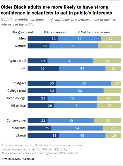 Older Black adults express higher levels of confidence in scientists to act in the public’s best interests than do younger Black adults.