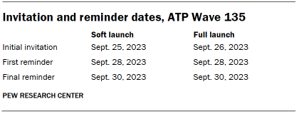 Invitations were sent out in two separate launches: soft launch and full launch. Sixty panelists were included in the soft launch, which began with an initial invitation sent on Sept. 25. The ATP panelists chosen for the initial soft launch were known responders who had completed previous ATP surveys within one day of receiving their invitation. All remaining English- and Spanish-speaking sampled panelists were included in the full launch and were sent an invitation on Sept. 26.