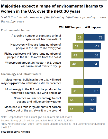 By contrast, fewer than half of Republicans expect these environmental harms to happen over the next three decades.