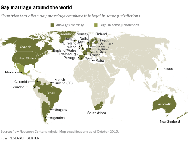 Note: Several jurisdictions worldwide have legalized same-sex marriage since 2020, bringing the total to more than 30. For an updated list, see our fact sheet