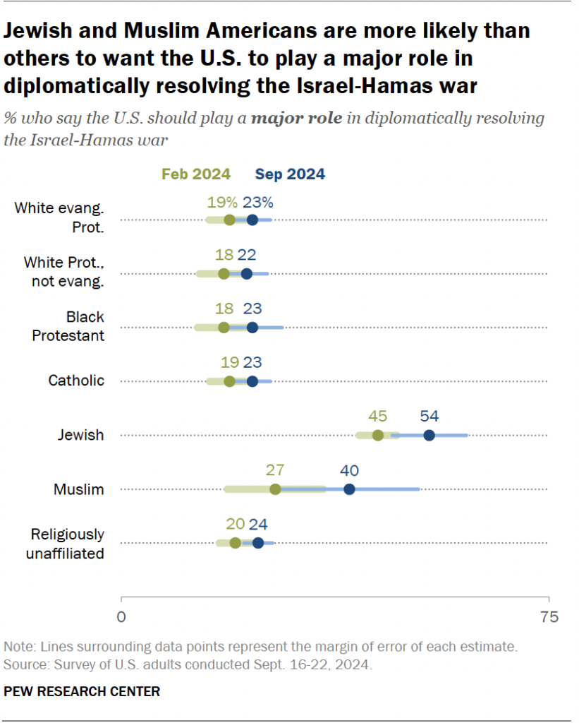 DownloadJewish and Muslim Americans are more likely than others to want the U.S. to play a major role in diplomatically resolving the Israel-Hamas war ← Prev Page 1 2 3 4 5 6 … 8 Next Page →