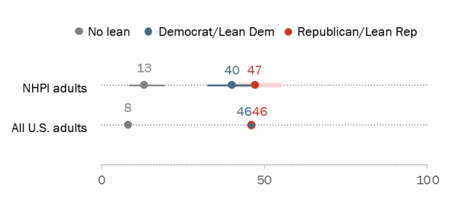 In a Center survey from 2023 and 2024, NHPI adults were about evenly divided in their party affiliations.