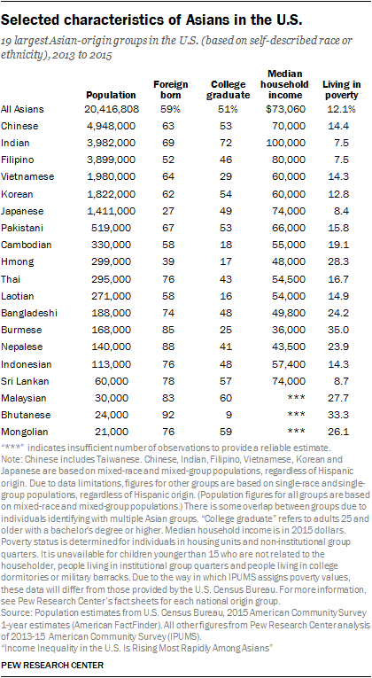Selected characteristics of Asians in the U.S.