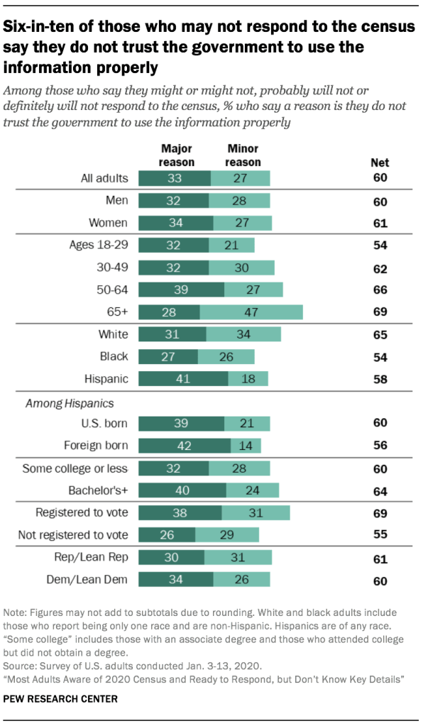 DownloadSix-in-ten of those who may not respond to the census say they do not trust the government to use the information properly ← Prev Page 1 2 3 4 5 6 … 12 Next Page →