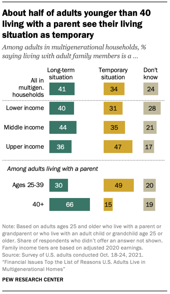Upper-income adults in multigenerational households are more likely than those with lower incomes to see their living situation as temporary