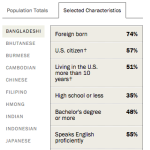 THE U.S. ASIAN POPULATION is a diverse one. A record 20 million Asian Americans trace their roots to more than 20 countries in East and Southeast Asia and the Indian subcontinent, each with unique histories, cultures, languages and other characteristics. The 19 largest origin groups together account for 94% of the total Asian population in the U.S.